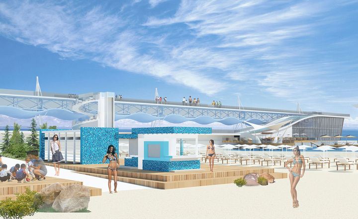 The theme for my design thesis was the design of the recreational area on the Finish Gulf (located near St.Petersburg) – the beach “Laskovii” (rus. “Tender”) in Solnechnoe (rus. “Sunny”) with complete infrastructure and detailed design of one of the buildings and its interior. The concept of the master plan derives from the three aggregate states of the water: ice, liquid and vapor. As molecules in water move slowly with the decreasing of the temperature, ice symbolizes the calm area with the leisure center for seniors, with sun shelters and the restaurant in the shadows of the pines (existing plants were preserved). The opposite to the ice – is vapor – the “boiling zone” of youngsters, full of activities, sport grounds, cafes and stage for music bands. Between ice and vapor there is a “liquid” zone – the place for the families and middle-aged people. This is the main promenade, which has two levels and ends with the panoramic restaurant, the special bath, the boat jetty and the pier. The beach features the special decks for sunbathing, children playgrounds, showers, minibars and changing rooms. There is an interesting point in the design of changing rooms: the facades, that are parallel to the sea and forest, are covered with the mirror plastic. This helps not to spoil the view when you are admiring the sea. The perpendicular facades, however, are decorated with the bright-blue tiles, which stand out to the color of sand and it makes it easier to find them. The design thesis was evaluated with the mark “Excellent”.